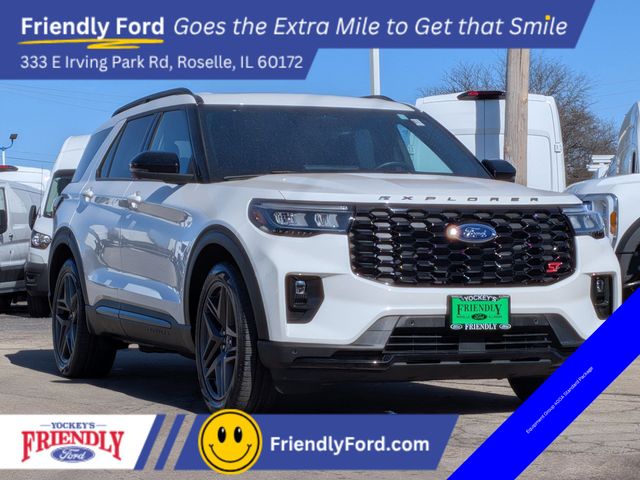 White Metallic 2025 Ford Explorer ST 4WD 3.0L EcoBoost® V6 10-Speed Automatic 4WD, Equipment Group 400A Standard Package. ST